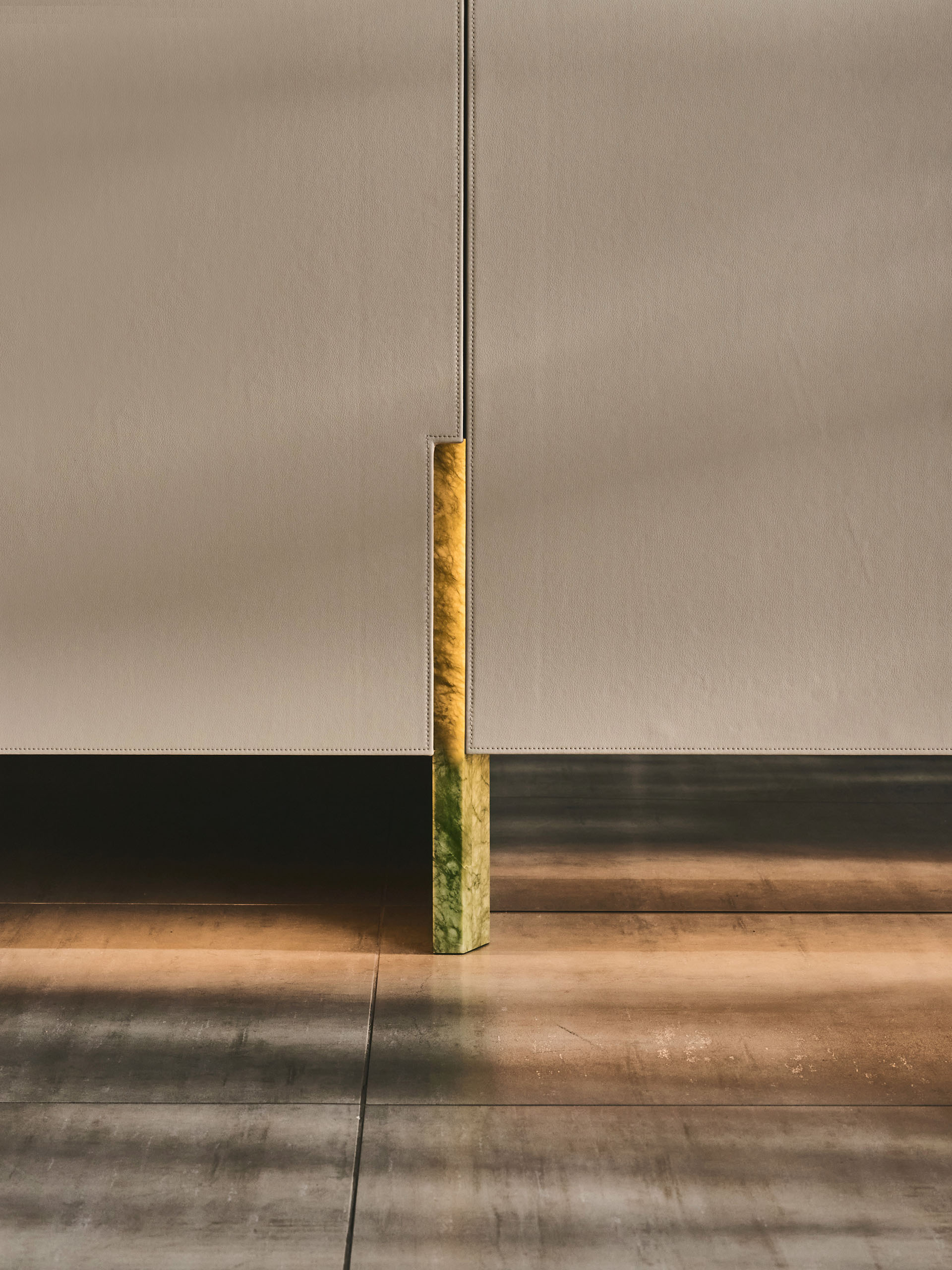 乍一看并不像厨房,而是像放在客厅里的控制台,同时其后厨的布局、设计、材质和比例却保持一致,功能与美感在整个空间中得以实现。