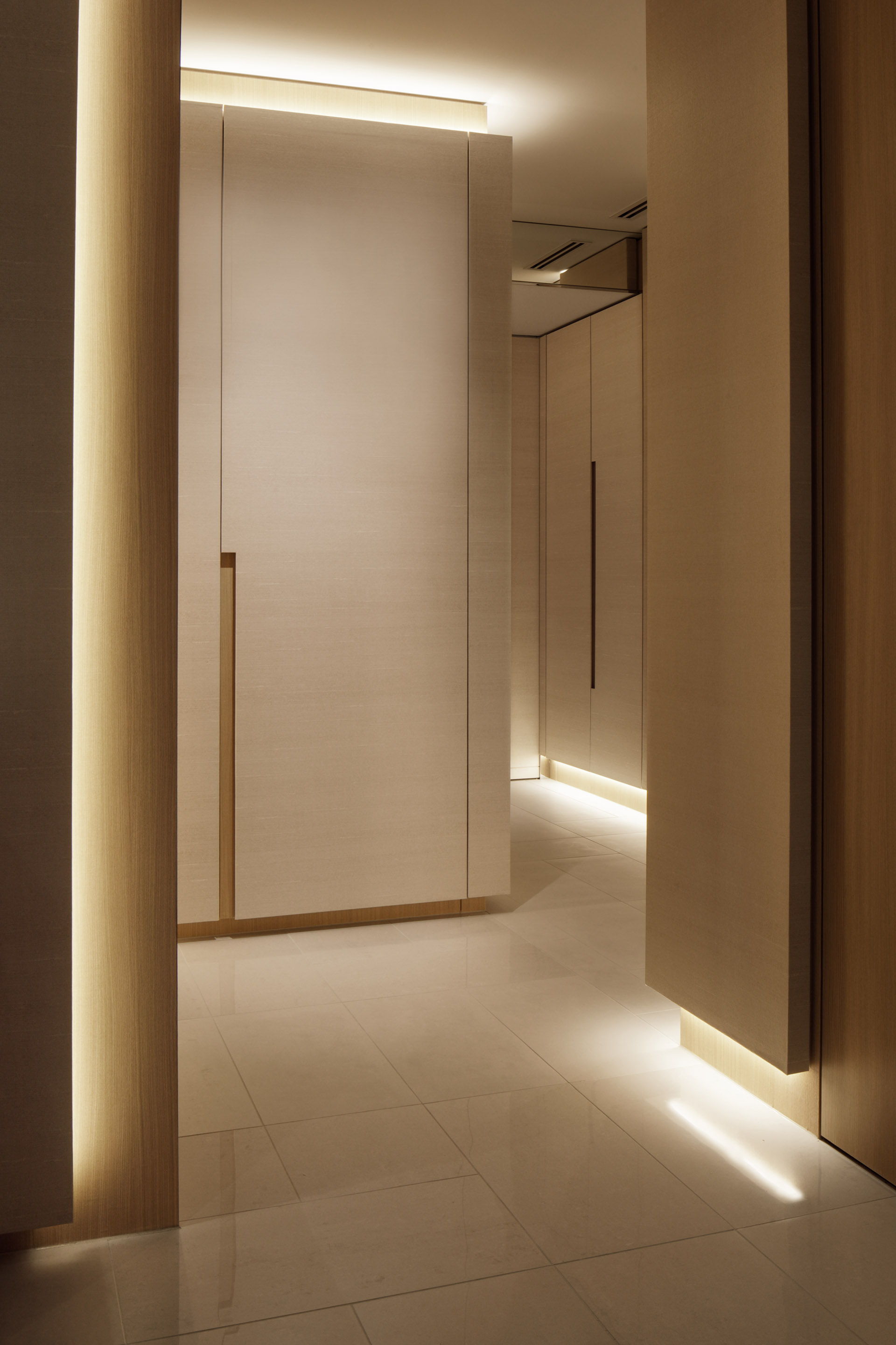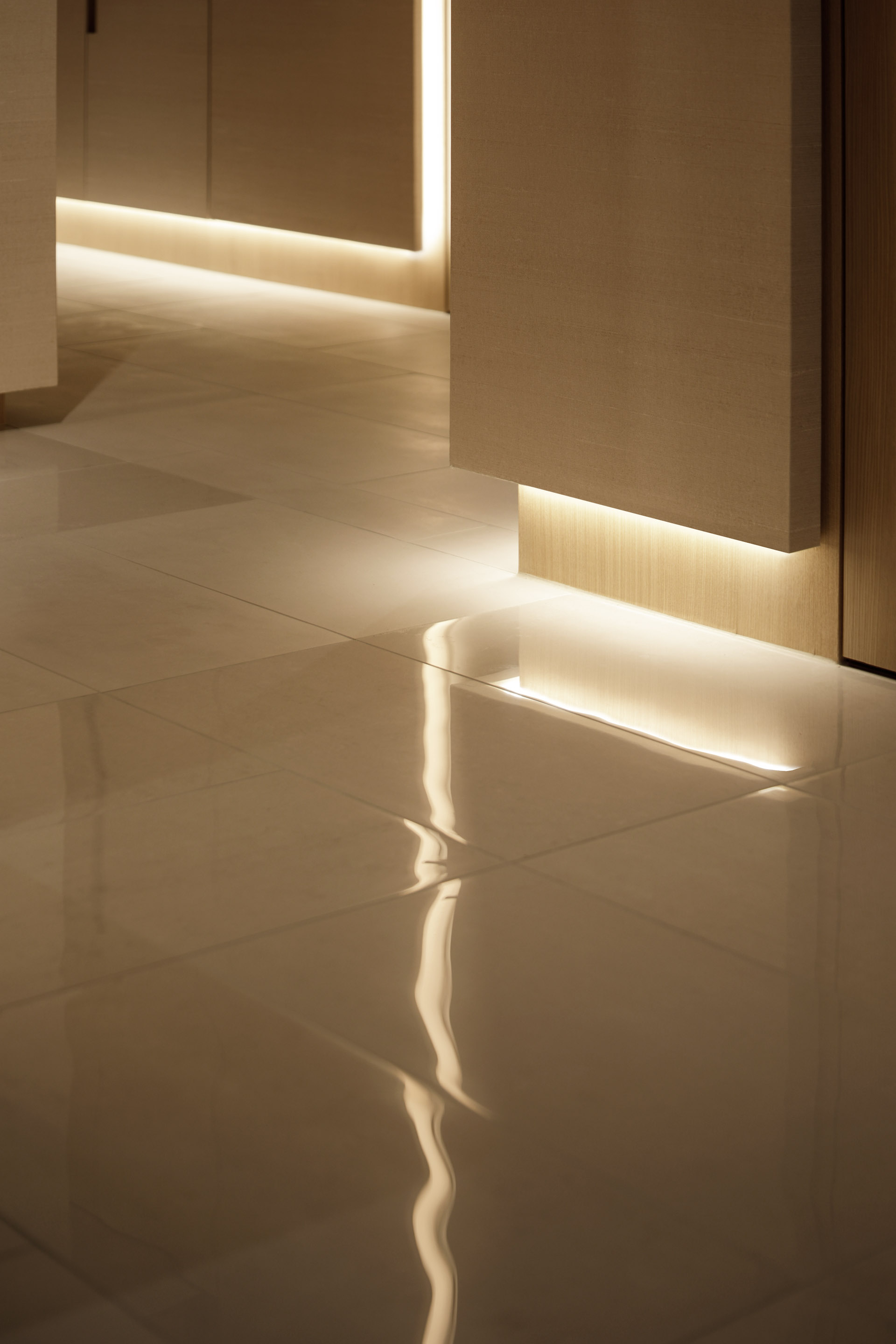 光のフレームは二層のパネルの隙間から漏れる光から造られ、それを各所に点在させることで柔らかな光が空間全体を覆い、多忙な日々に一息を付けるリラクゼーション空間を創り上げた。
